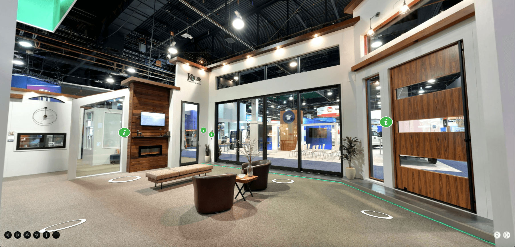 - Circle hot spots that take you directly to a specific area of the showroom